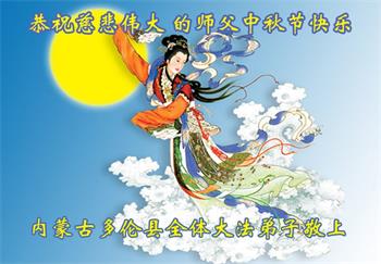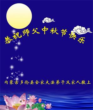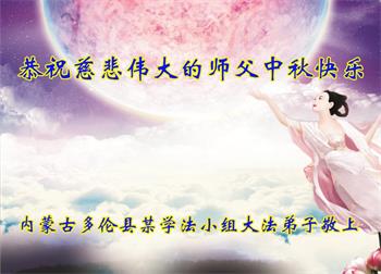 弟子叩拜!師父,學法小組大法弟子恭祝您中秋節快樂!學法小組是一個熔煉人的環境,大法弟子在這個環境中,向內找,比學比修,共同精進共同提高,在師尊的慈悲保護下救度眾生。弟子們希望能少留下一些遺憾,希望不辜負師尊的慈悲普度。內蒙古多倫縣某學法小組大法弟子敬上!