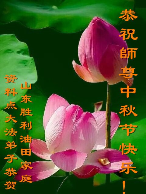 山東勝利油田家庭資料點大法弟子恭祝師尊中秋節快樂!