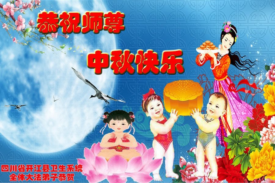 四川省達州市開江縣衛生系統一學法小組大法弟子恭祝師尊中秋快樂!