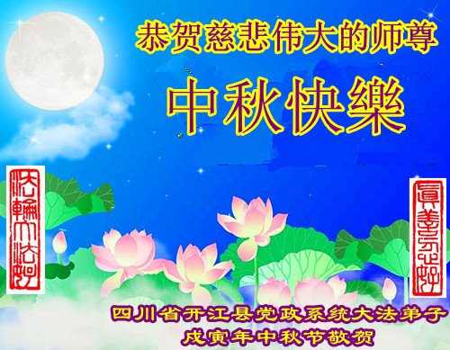 又是一年中秋節到,建設銀行系統全體大法弟子,沐浴在偉大的師恩浩蕩中,弟子們想念您!盼望與偉大的師父早日團圓,恭祝偉大的師父中秋節快樂!