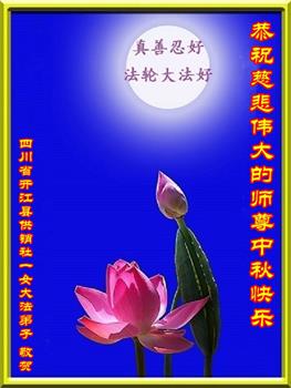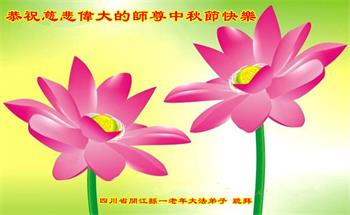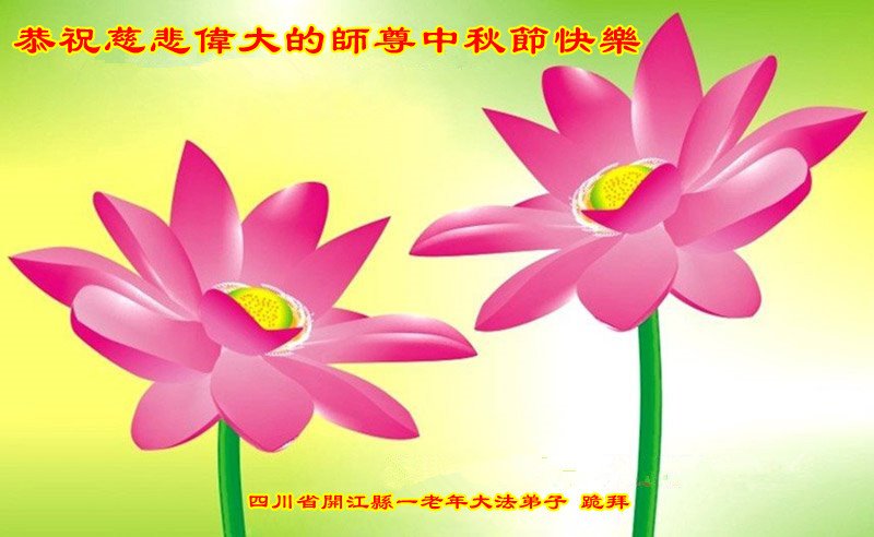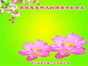 我是一名修煉兩年半的青年大法學員,值此中秋佳節,衷心祝願李洪志師父中秋節快樂!感謝師父把我從一個利慾熏心,滿身污穢的人洗刷成一個坦坦蕩蕩,真誠善良的大法弟子!