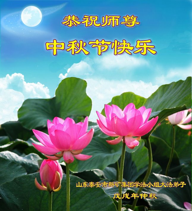 山東省泰安市新礦集團全體大法弟子恭祝慈悲偉大的師尊中秋節快樂!