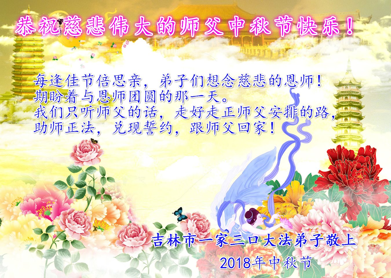 吉林市一家三口大法弟子恭祝慈悲偉大的恩師中秋快樂!