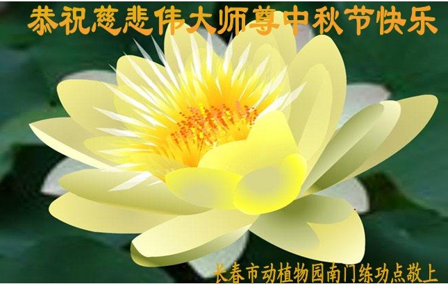 吉林省長春動植物園南門學法小組大法弟子恭祝慈悲偉大的師尊中秋節快樂!