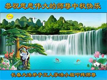吉林省長春大法弟子倆個學法小組恭祝慈悲偉大的師尊中秋節快樂!