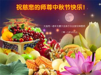 遼寧省大連一老年夫妻大法弟子及全家恭祝慈悲的師父中秋節快樂!