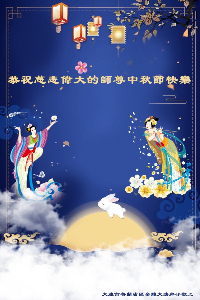 大連普蘭店區全體大法弟子恭祝慈悲偉大的師尊中秋節快樂!