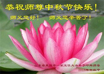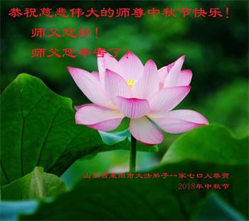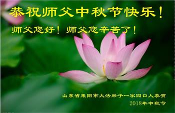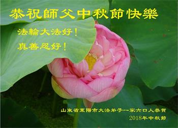山東省煙台市萊陽市一家五位大法弟子代表全家八口人衷心恭祝慈悲偉大的師尊中秋佳節快樂!