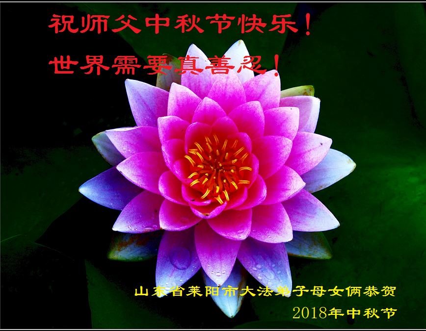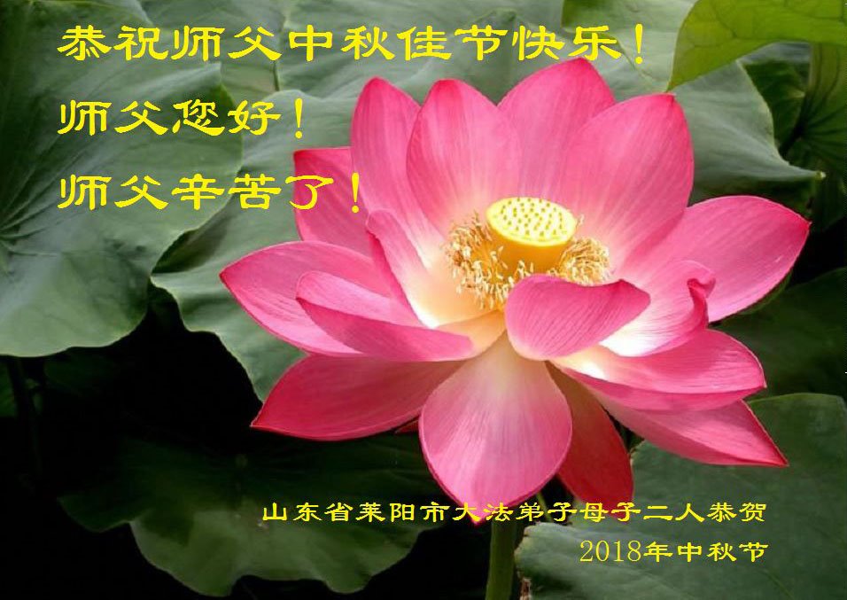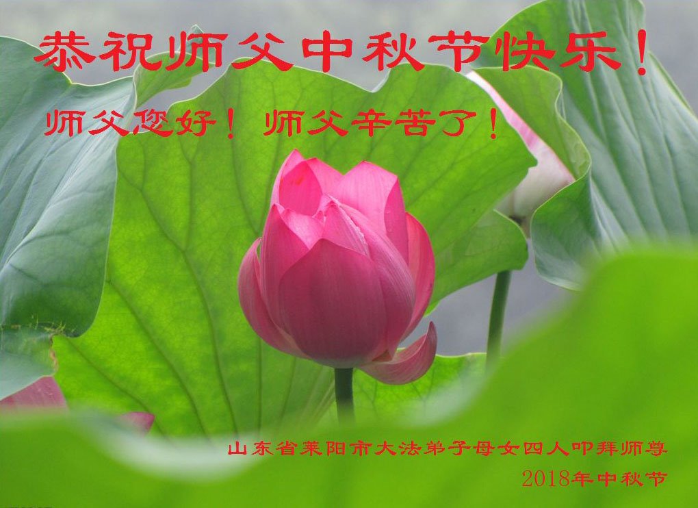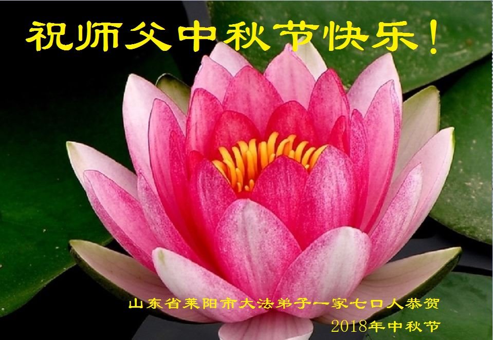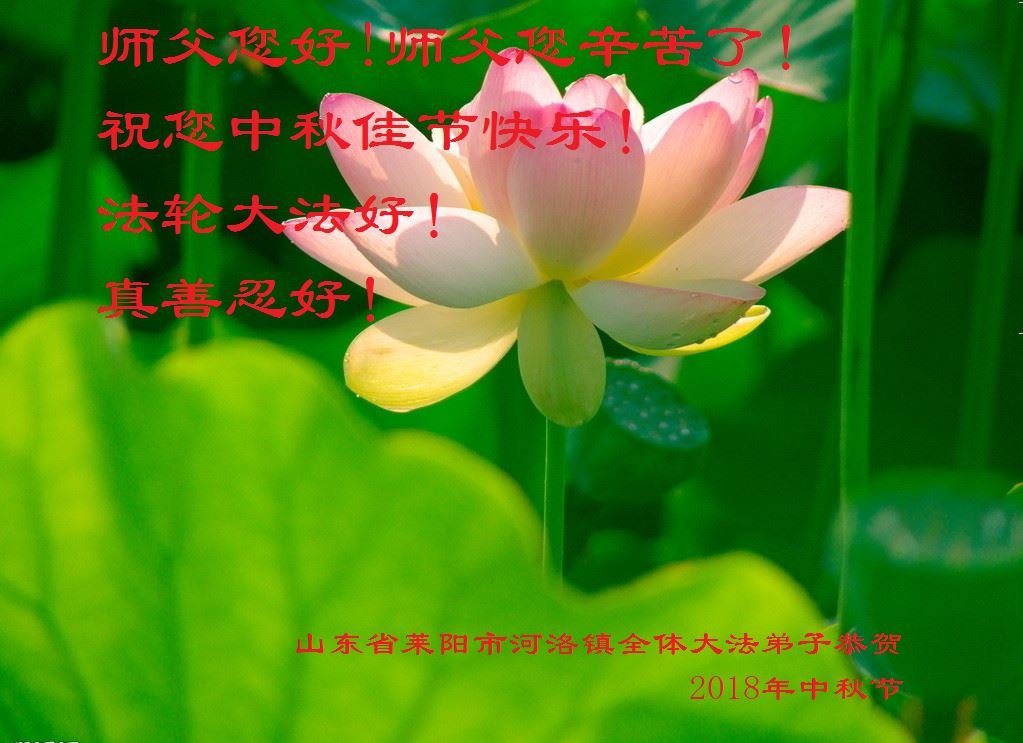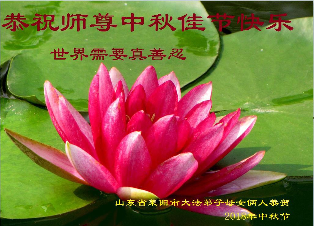 值此二零一八年中秋佳節到來之際,山東省煙台市萊陽市三人學法小組的大法弟子向師尊問好!恭祝慈悲偉大的師尊中秋佳節快樂!
