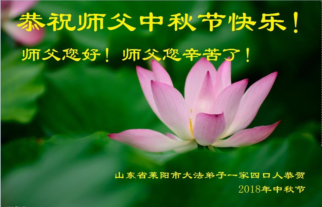 山東省煙台市萊陽市大法弟子一家三位大法弟子及家中不修煉的人共同恭祝慈悲偉大的師尊中秋佳節快樂!