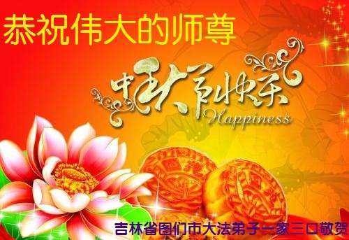 吉林省延邊州圖們市大法弟子一家三口敬賀師尊中秋節快樂!