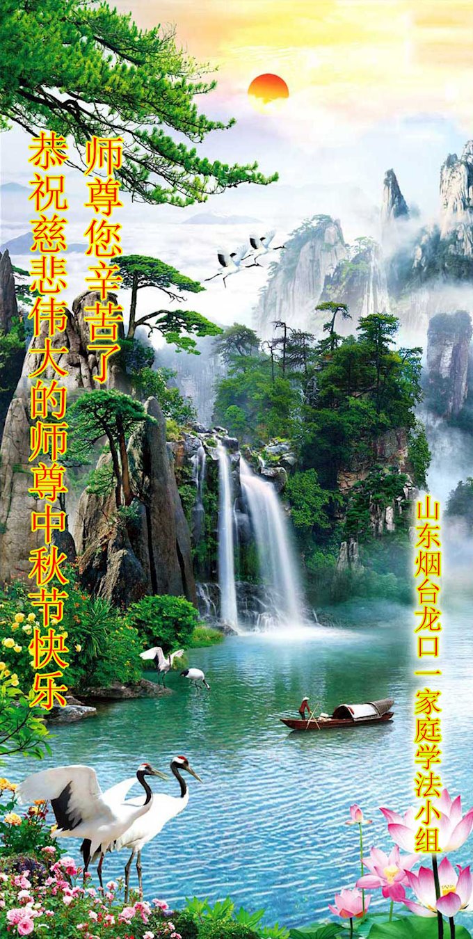 山東煙台龍口一家庭學法小組大法弟子恭祝師尊中秋節快樂!