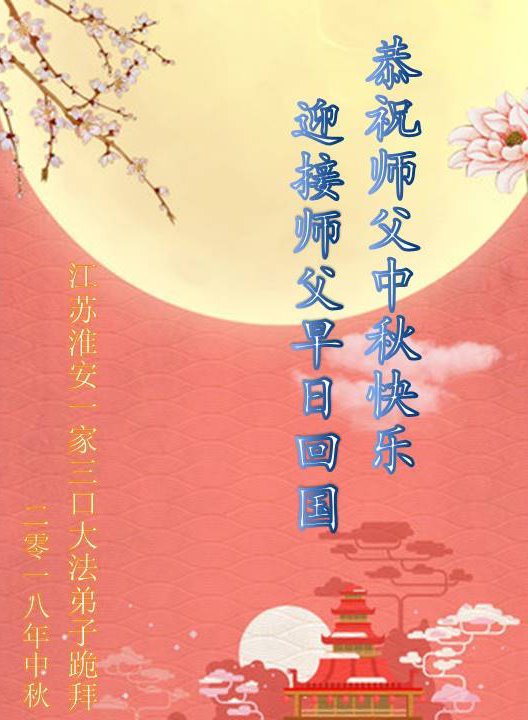 江蘇淮安一家三口大法弟子恭祝師父中秋快樂!