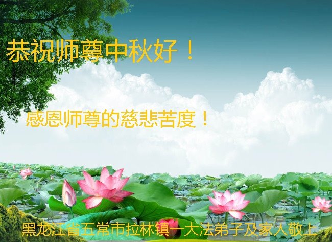 黑龍江省哈爾濱市五常市拉林鎮一大法弟子恭祝師尊中秋好!