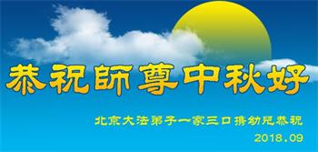 北京大法弟子一家三口攜幼兒恭祝師尊中秋好!