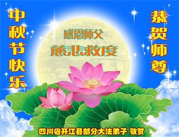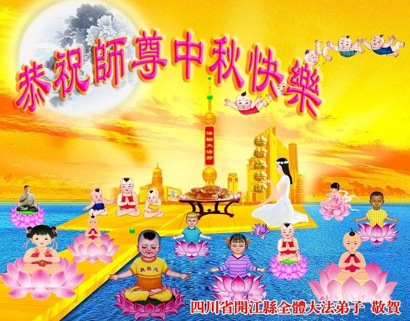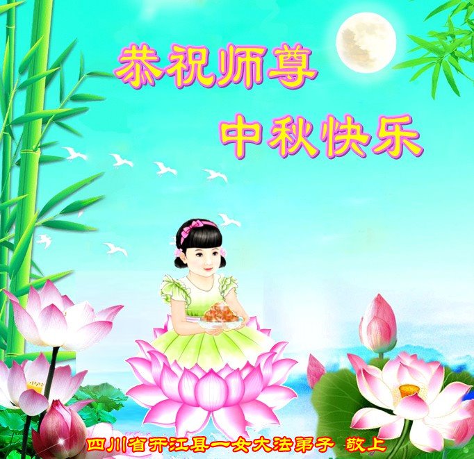 四川綿陽一大法弟子暨全家恭祝師尊中秋快樂!