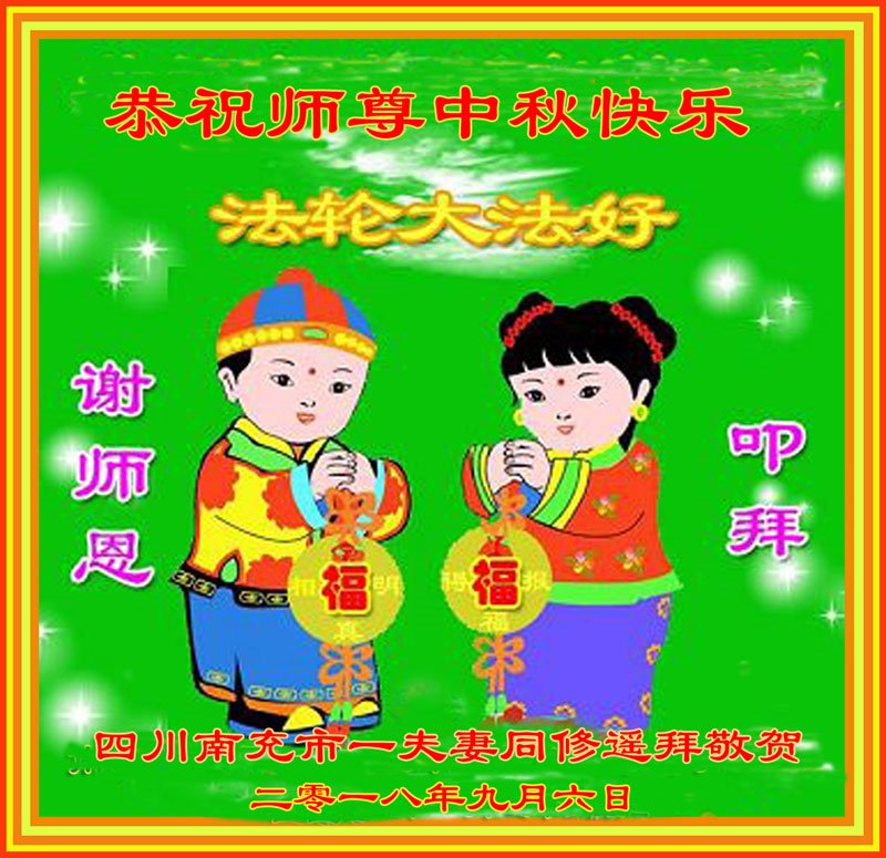四川南充市一夫妻大法弟子恭祝師尊中秋快樂!