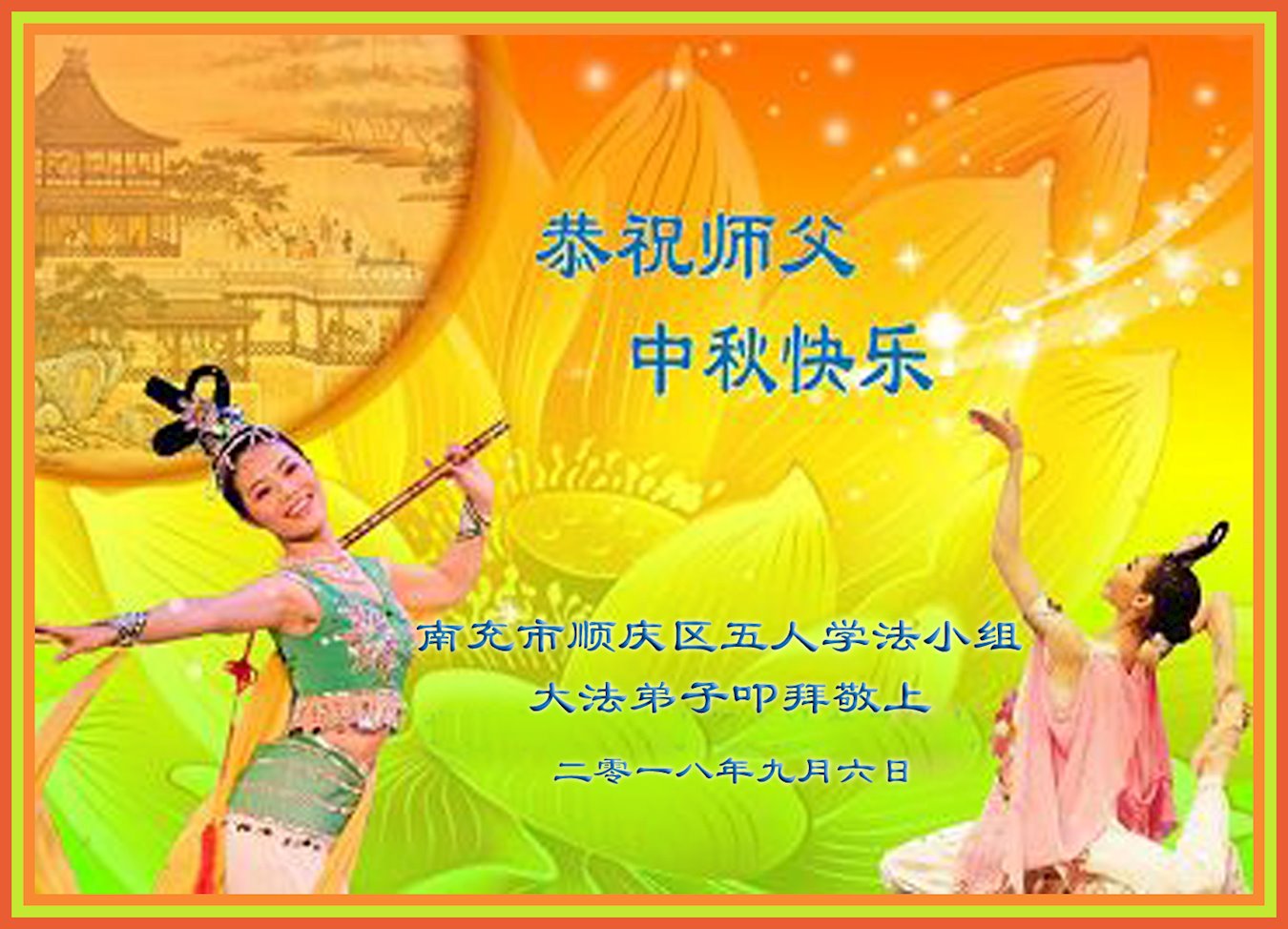 四川南充市順慶區三個學法小組全體大法弟子恭祝偉大的師尊中秋節快樂!