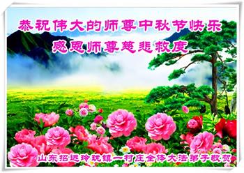 山東省煙台市招遠市玲瓏鎮一村莊全體大法弟子恭祝偉大的師尊中秋節快樂!