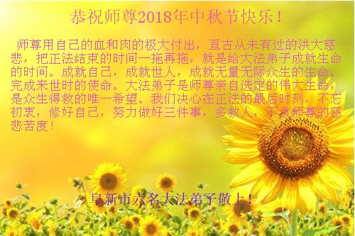 遼寧省阜新市六名大法弟子恭祝師尊2018年中秋節快樂!