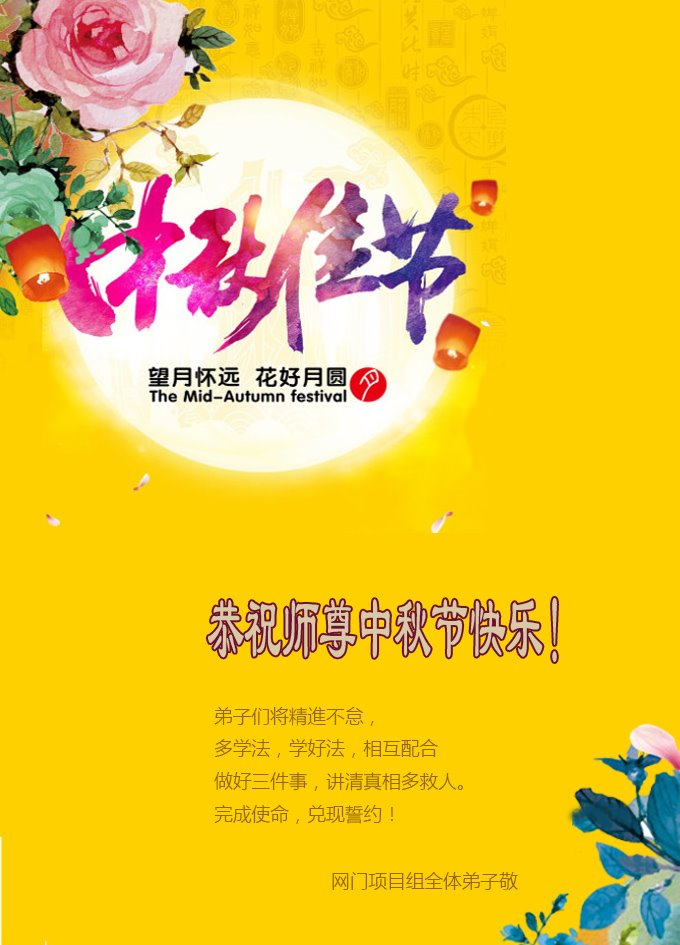 網門項目組全體大法弟子祝師尊中秋快樂!
