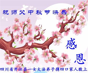 四川省達州市開江縣一女大法弟子攜四口家人恭祝師父中秋節快樂!