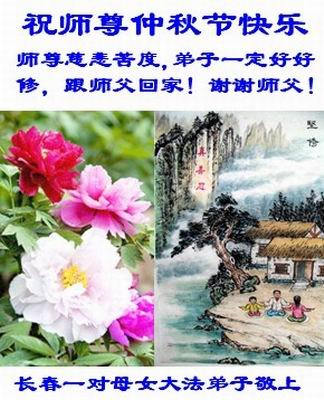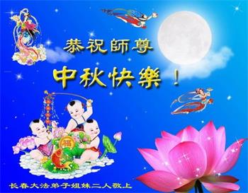 吉林省長春大法弟子姐妹二人恭祝師父中秋節快樂!謝謝師父慈悲救度!