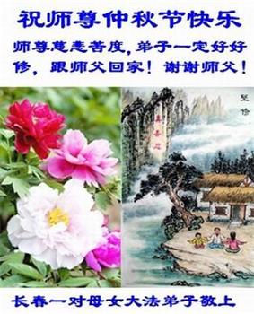 吉林省長春一對母女大法弟子祝師尊中秋節快樂!