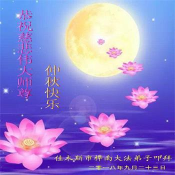 黑龍江省佳木斯大法弟子恭祝慈悲偉大的師尊中秋節快樂!