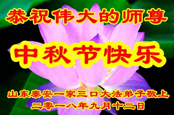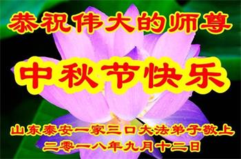 山東泰安一家三口大法弟子及一學法小組大法弟子恭祝偉大的師尊中秋節快樂!