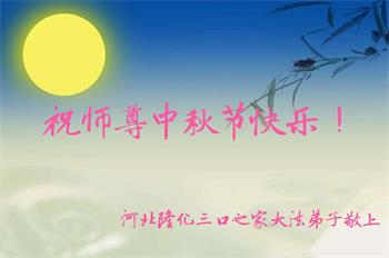 大陸一家三位大法弟子恭祝慈悲偉大的師父中秋節快樂!