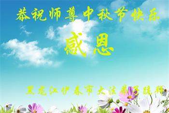 黑龍江省伊春市一老年大法弟子及家人恭祝慈悲偉大的師尊中秋節快樂!