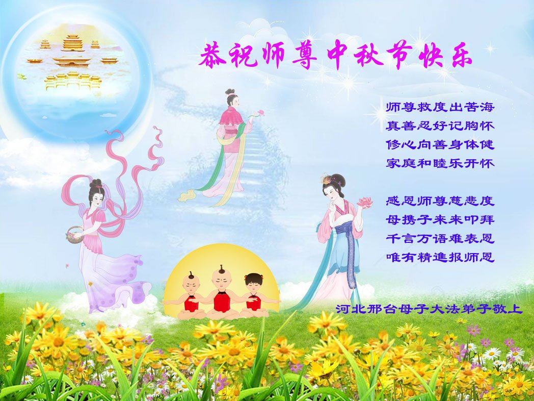 河北邢台大法弟子母子恭祝師尊中秋節快樂!