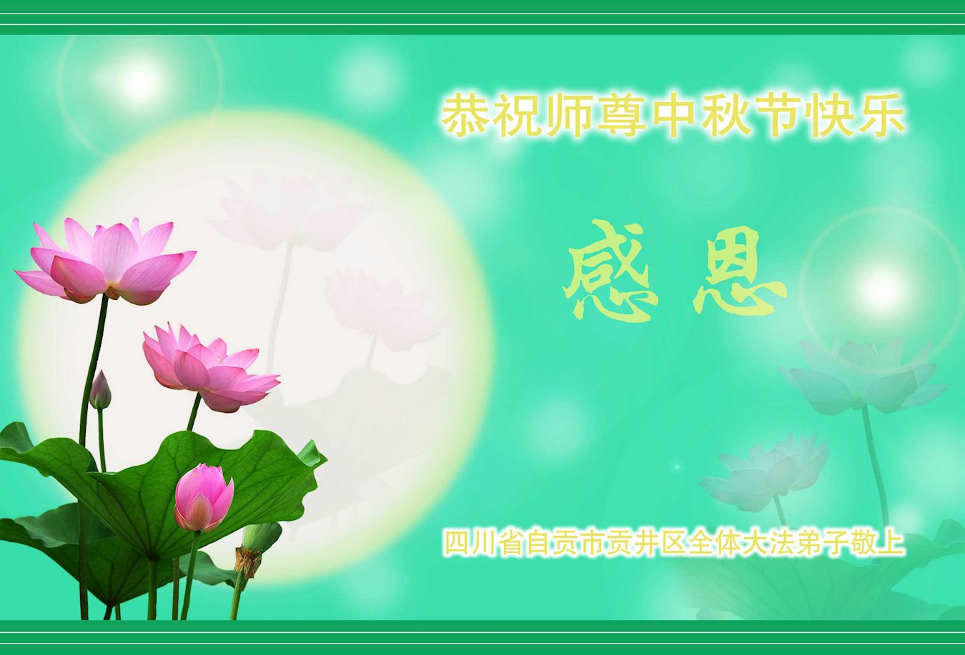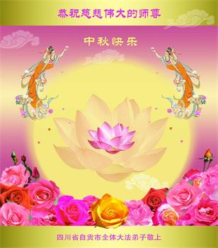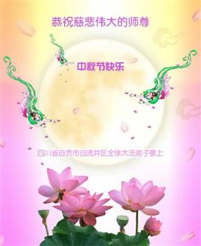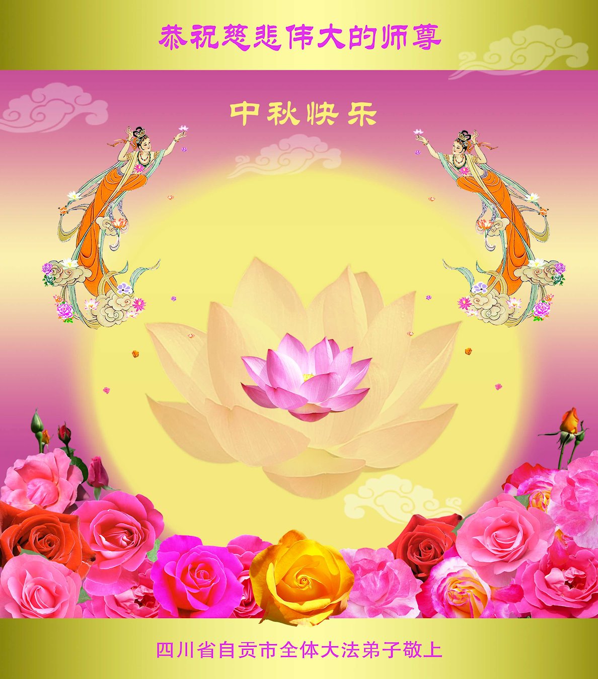 四川省自貢市全體大法弟子恭祝慈悲偉大的師尊中秋節快樂!謝謝師尊慈悲救度!