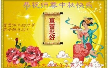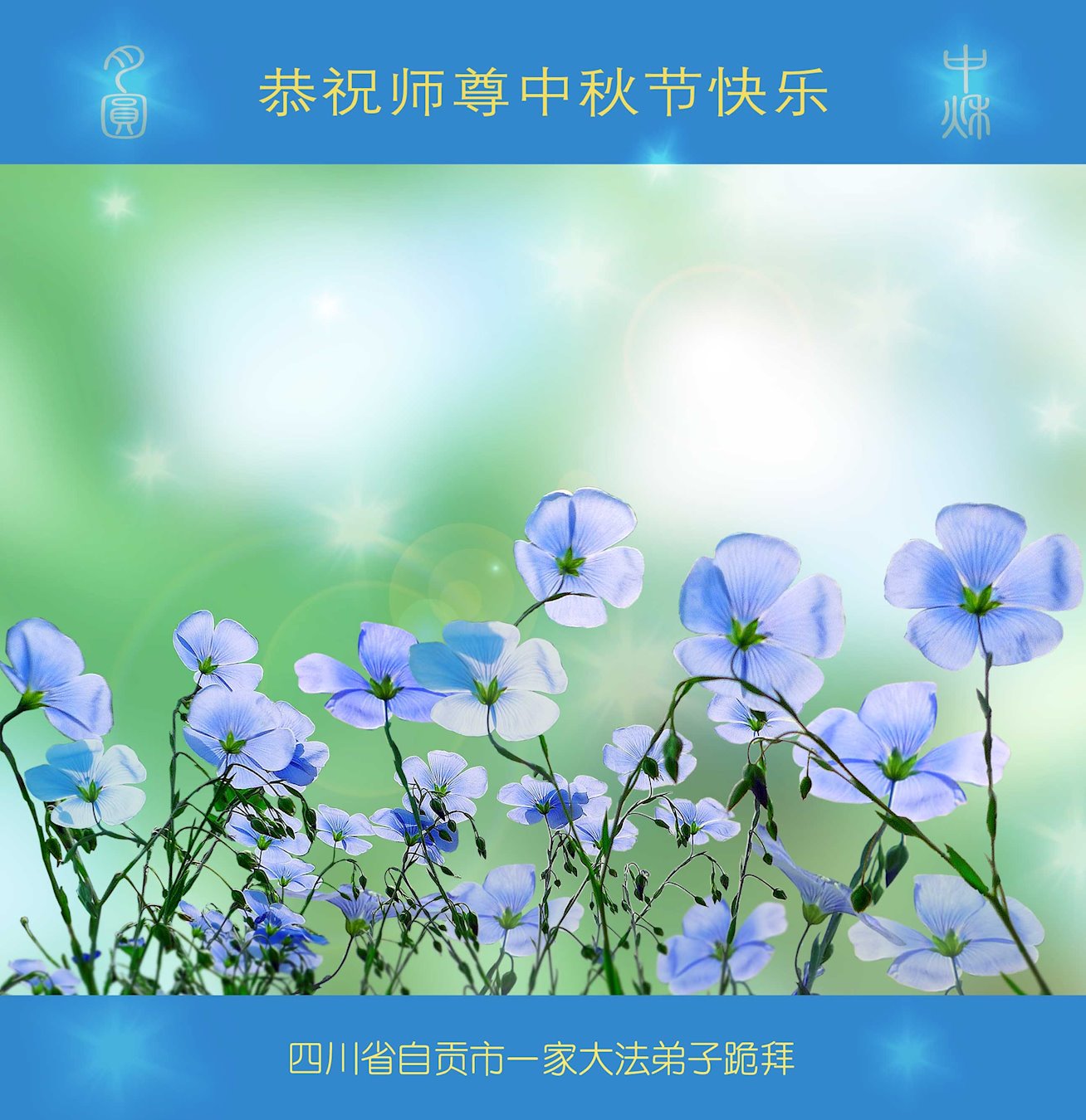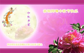 四川省自貢市一家大法弟子恭祝慈悲偉大的師尊中秋節快樂!