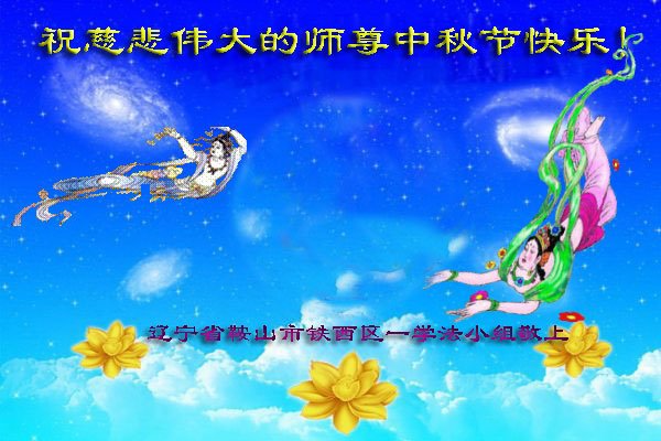 遼寧省鞍山市鐵西區一學法小組大法弟子祝師尊中秋節快樂!