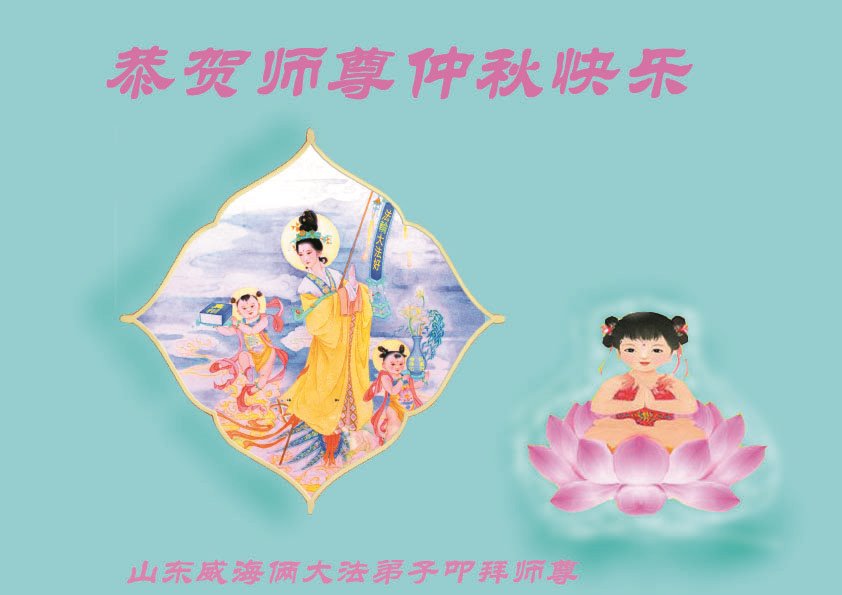 山東威海兩大法弟子恭祝師尊中秋快樂!