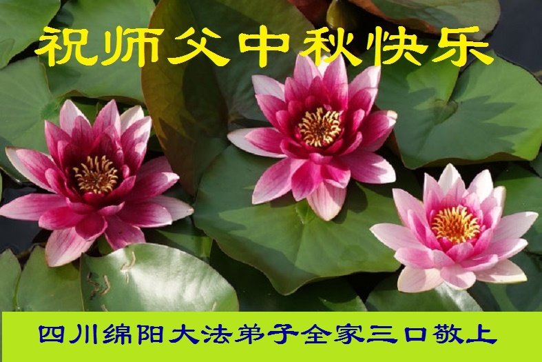 四川綿陽大法弟子全家三人恭祝師尊2018年中秋節快樂!