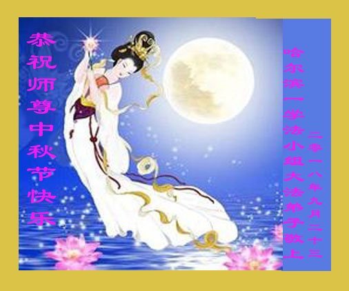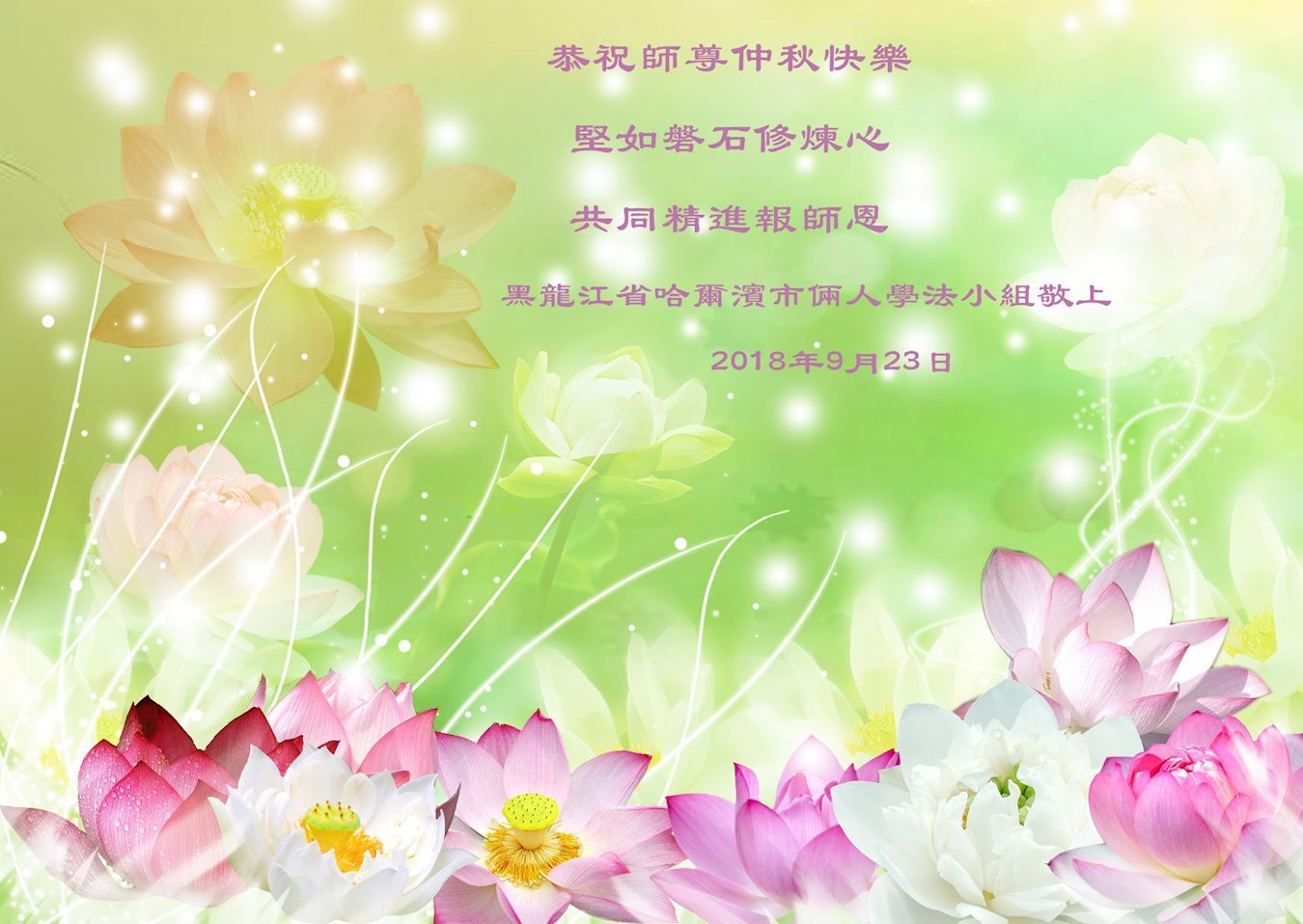 黑龍江省哈爾濱市倆人學法小組大法弟子恭祝師尊中秋快樂!