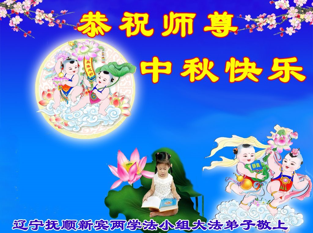 遼寧撫順新賓兩學法小組大法弟子恭祝師尊中秋快樂!