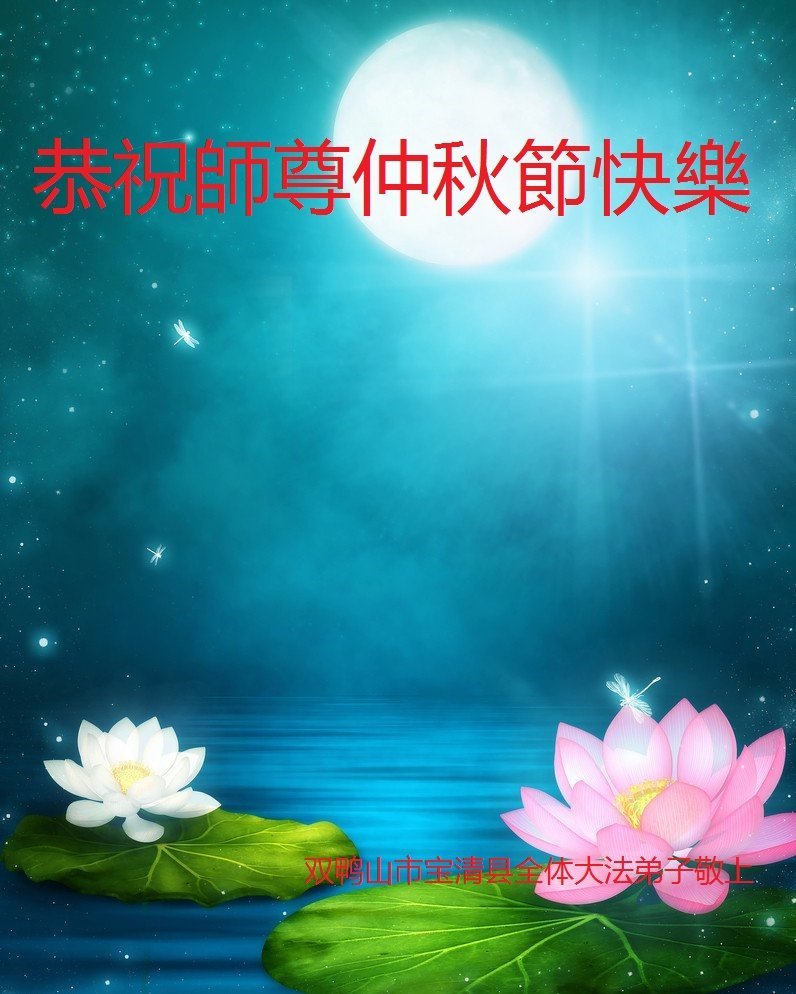 黑龍江省雙鴨山市寶清縣大法弟子恭祝師尊中秋節快樂!
