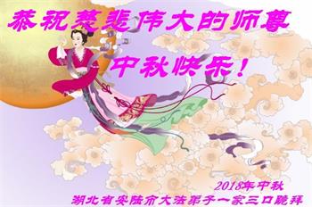 湖北省孝感市安陸市大法弟子一家三口恭祝師尊中秋快樂!
