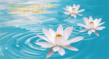 中秋佳節來臨,千言萬語不能表達對師父的感恩,徒兒只有精進、精進、再精進,學好法,儘量去背法,多救人儘量去面對面講清真相,煉功不怠儘量保持每天煉完五套功法,提高心性,修好自己的一思一念,一起完成好救度眾生的使命。叩拜、叩拜、再叩拜!