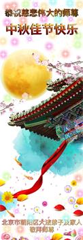 北京市朝陽區大法弟子及家人恭祝慈悲偉大的師尊中秋節快樂!