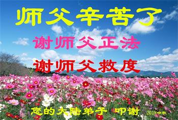 作為師父的弟子,只有聽師父的話,按師父的要求去做,才不辜負師尊對我們的一切期望,師父珍惜我們每一個弟子,我們更要珍惜自己,在正法的最後時刻,我要多學法,學好法,改變人的觀念,在法中修好自己,時刻想著自己肩負的「講清真相,救度世人」的責任。抓緊時間多救人。