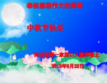 大陸稅務部門大法弟子叩拜師父:恭祝慈悲偉大的師父戊戌年中秋節快樂!弟子真是很想念師父。弟子深知:唯有做好「三件事」才是最好的報答師恩!