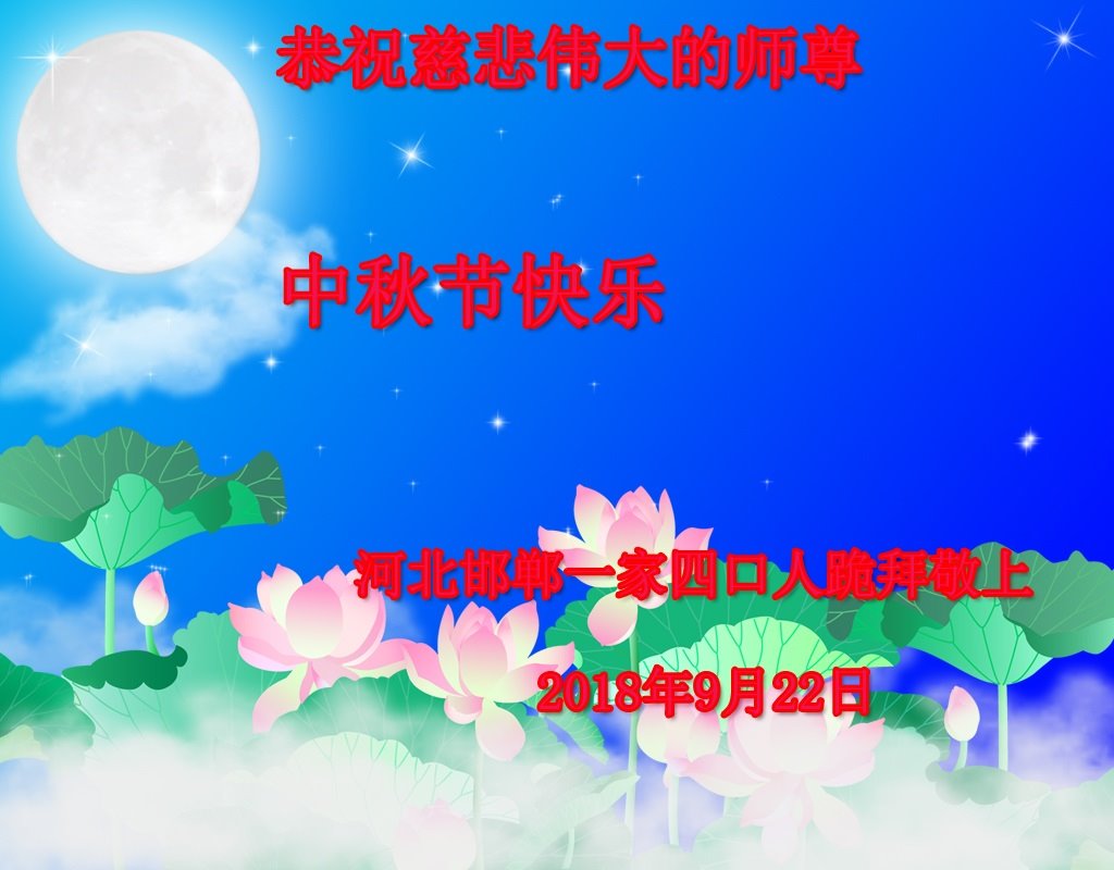 師尊您好!弟子祝您中秋佳節快樂!這些年來在您的呵護下走到現在,自己總是做不好,對不起您的慈悲苦度,今後努力多學法,學好法。努力做好三件事,做到修煉如初,跟師父回家。