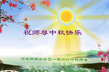 河南省周口一大法弟子攜全家恭祝師父中秋節快樂!