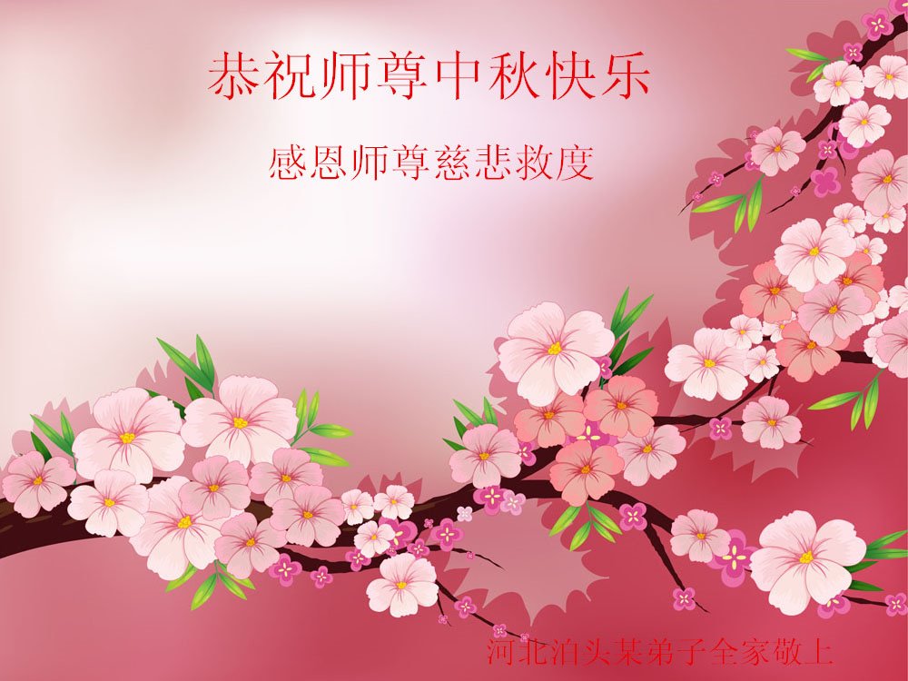 師尊好!師尊您辛苦了!在這中秋佳節到來之際,濰坊大法弟子全家感謝慈悲偉大的師尊!恭祝師尊中秋快樂!