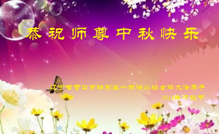 千言萬語也無法感恩我們的師父,把弟子在地獄中撈起、洗淨,使生命在法中昇華,珍惜生命意義。在中秋節之際,大法弟子發自內心的感恩師尊救度之恩,誠懇的問候一聲:師父您好!中秋節好!弟子牢記師尊教導,三件事一定做好,多學法,背法,向內修,正念正行,清除邪惡,在大陸邪惡環境下,逆流而上,抓緊時間慈悲多救人,緊跟師父正法進程。